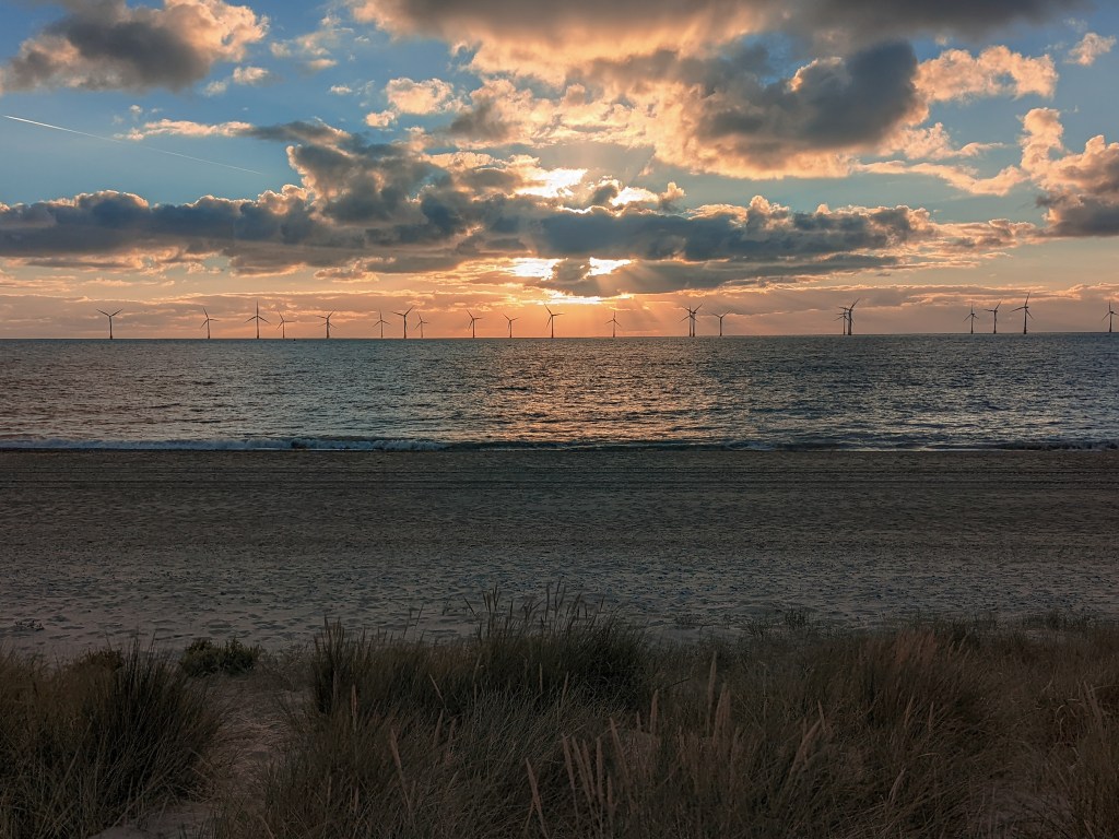 Google maps had shown there were no churches along the route tonight, so we would have to find a space to wild camp between the two towns. We didn’t get far past Caister when we noticed the first big holiday park, with its rows of caravans covering the landscape, before we decided to call it a night. We still had an hour or so of light, but with only 10 miles to complete the next morning, there was no rush, and we decided we would much rather wait it out and camp here on the beach where we knew we would be left undisturbed.