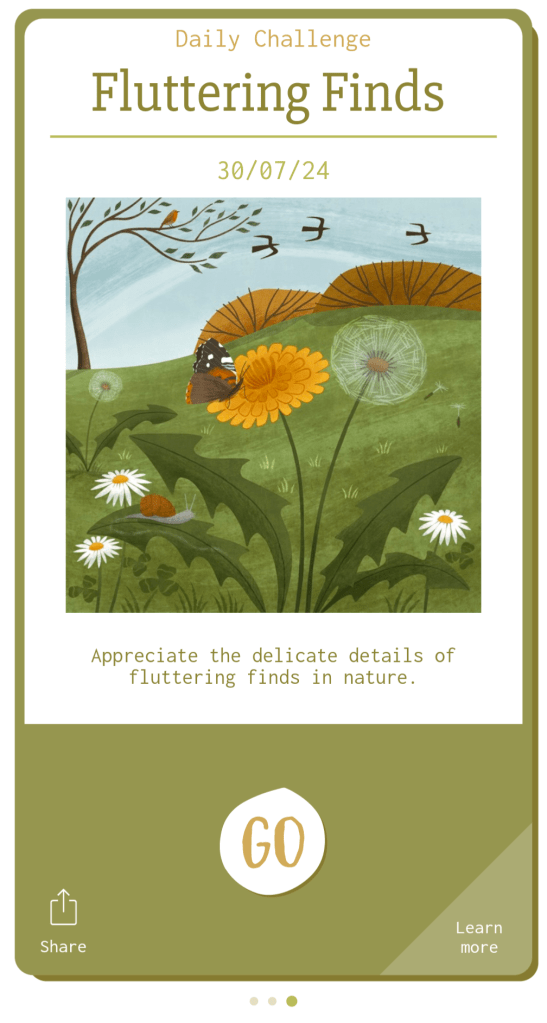 The app gives you a prompt each day to take a photo of nature. It’s had me crouching and craning looking for things to take a photo of each day.